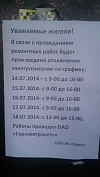 Сегодня на домах на фпк (около ШК №98) появилась такое объявление, что электричества не будет всю неделю днем. Ладно тем кто работает, а что делать мамочкам с детишками в декрете и пенсионерам...