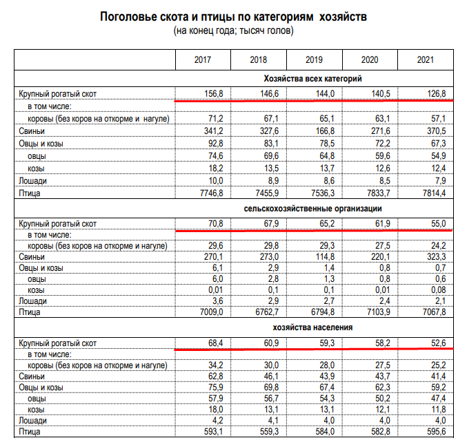 Мы об этом писали ранее, очень интересная картина, когда чиновники говорят о продовольственной безопасности. Вот посмотрите, на ноябрь 2024 года 48 тысяч голов КРС. А в прошлые периоды?